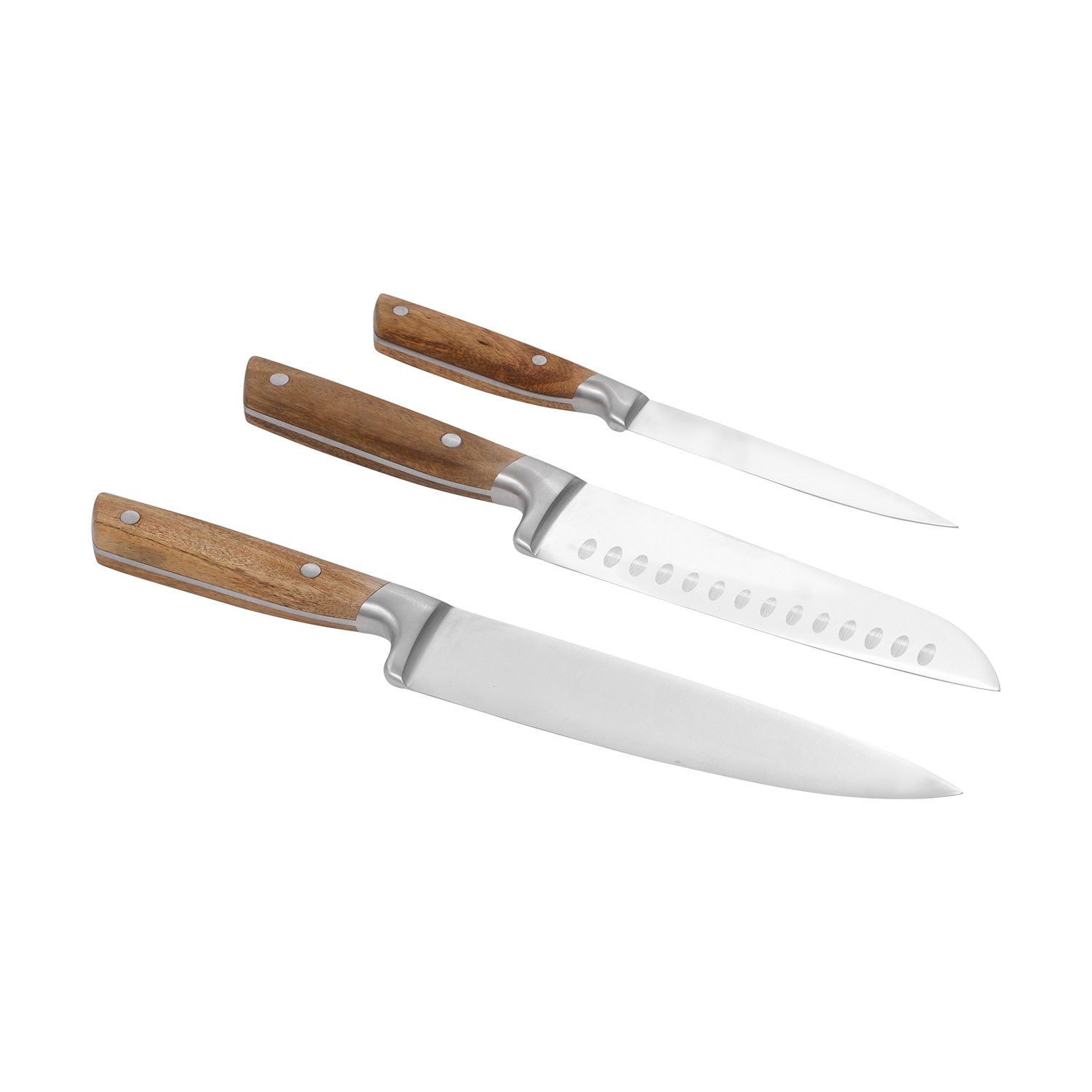 Orrefors veitsisetti. Setissä on 3 kpl veistä, 20 cm, 18 cm ja 12 cm (terien pituus). Kierrätettyä terästä. Pakattuna lahjalaatikkoon. Meiltä voit tilata veitsisetit omalla logolla kaiverrettuna. Pyydä tarjous!