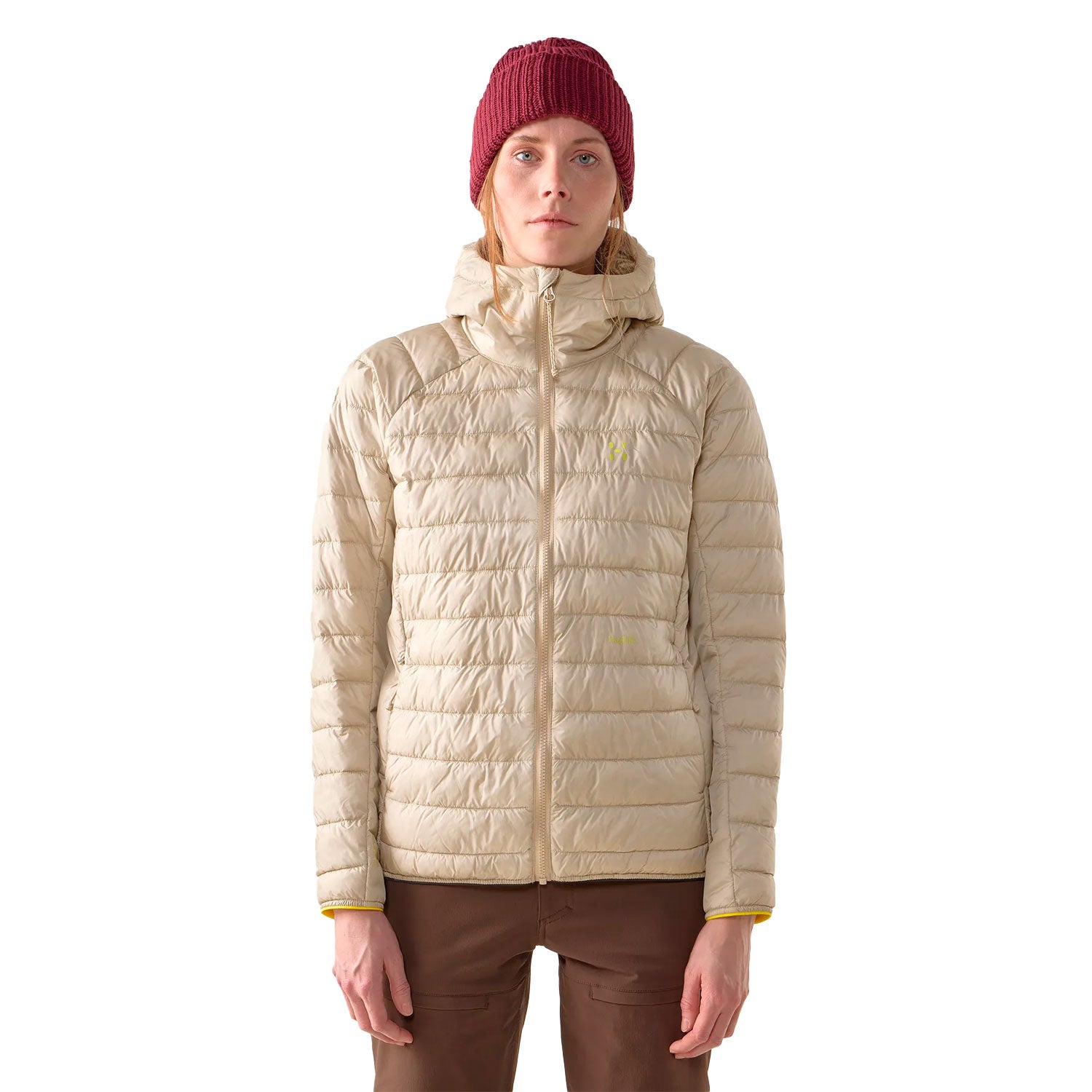 Naisten Haglöfs kevyttoppatakki hupulla. Kevyt ja helposti pakattava eristetty takki, joka sopii monenlaiseen toimintaan arvaamattomassa säässä. Se on täytetty kierrätetyllä synteettisellä MIMIC Gold -eristeellä, joka jäljittelee untuvan lämmittäviä ominaisuuksia, mutta toimii myös kastuessaan. Tämän takin valmistuksessa on käytetty edellisen kauden ylijäämämateriaaleja. Naisille ja miehille on saatavana omat mallit. Meiltä voit tilata Haglöfs kevyttoppatakit omalla logolla. Pyydä tarjous!