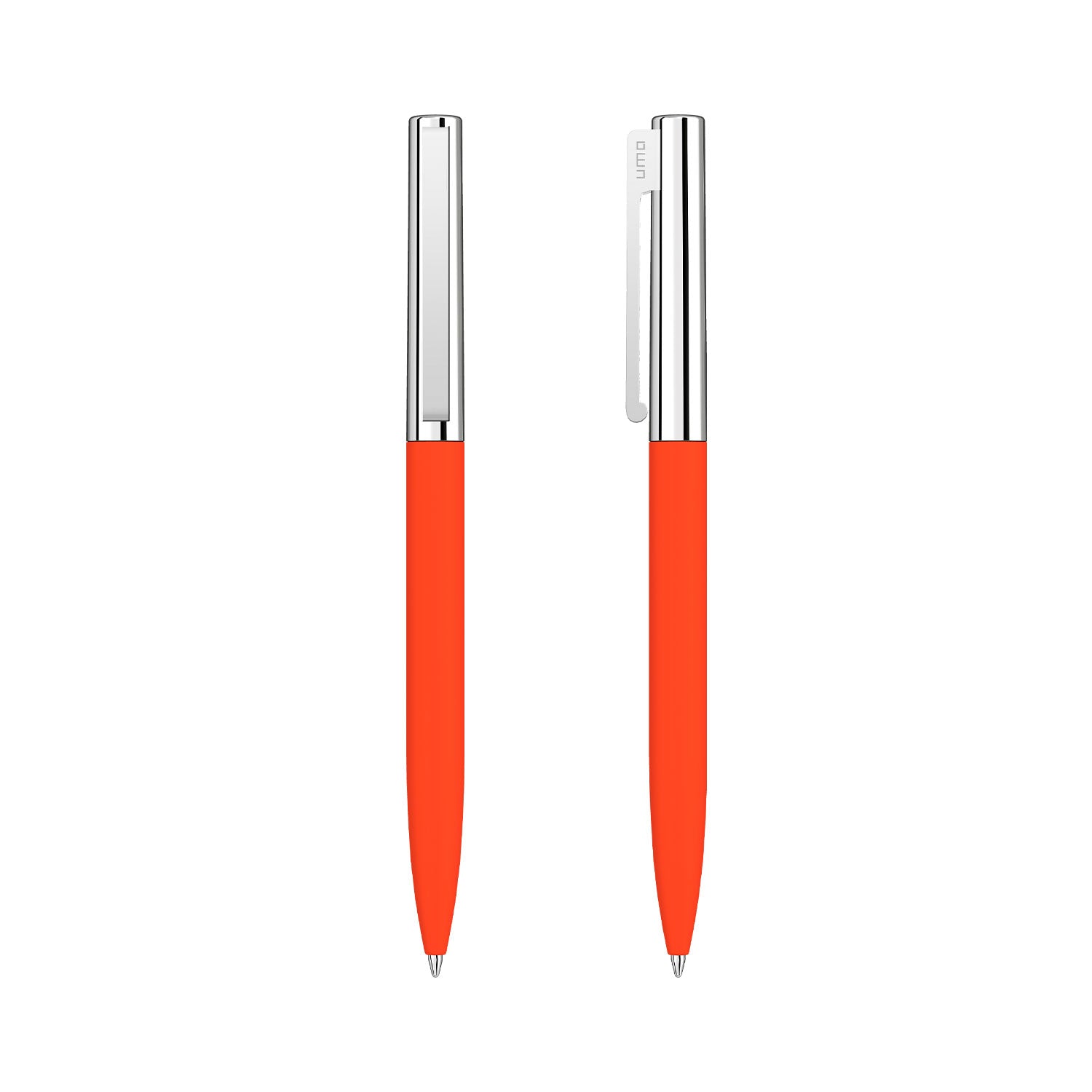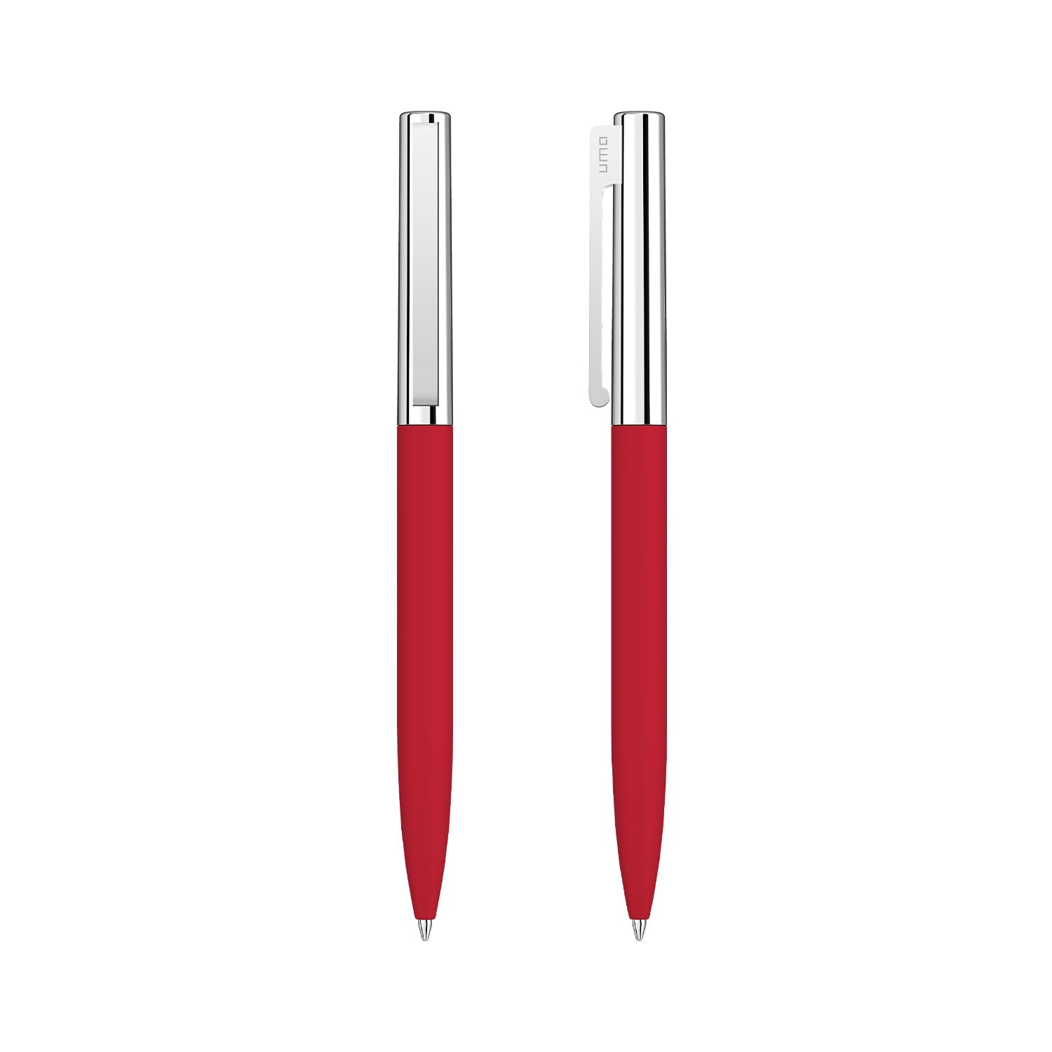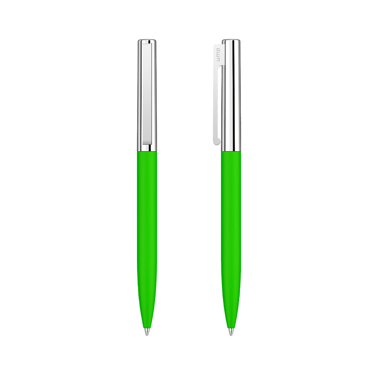 Tilaa Uma Bright Gum metallinen kuulakärkikynä logolla, painatuksella tai kaiverruksella alk. 100 kpl. Klassisen tyylikäs ja laadukas metallikynä, jossa kynän yläosa on kromin väristä metallia ja alaosassa on soft touch -kumimainen pinta. Kynän muste riittää noin 4,5 km kirjoittamiseen, jonka jälkeen voit tilata uudet mustesäiliöt. Tämä on laadukas mainoskynä, joka on kestävä, pitkäikäinen ja ergonominen (hyvä kirjoitustuntuma). Tilaa kuulakärkikynät omalla logolla brändättynä! Pyydä tarjous!