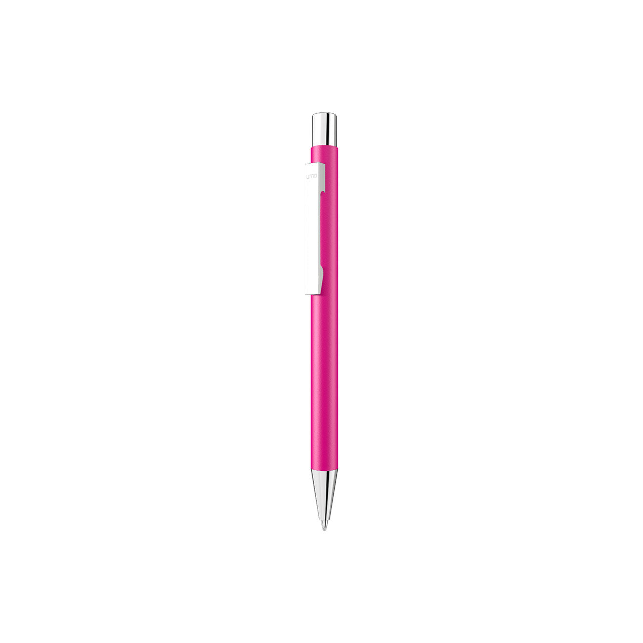Uma Straight SI metallinen kuulakärkikynä. Tämä on laadukas, mutta edullinen mainoskynä. Tilaa kynät omalla logolla, kaiverruksella tai painatuksella alk. 100 kpl. Kynässä on kiiltävän kromin värinen klipsi, painonappi ja kynän kärkiosa. Kynän holkkia, eli rungon keskiosaa on saatavana eri väreissä. Mustesäiliön muste riittää noin 4,5 km kirjoittamiseen. Tämänkään jälkeen kynää ei tarvitse heittää roskiin, vaan voit tilata kynille uudet mustesäiliöt.