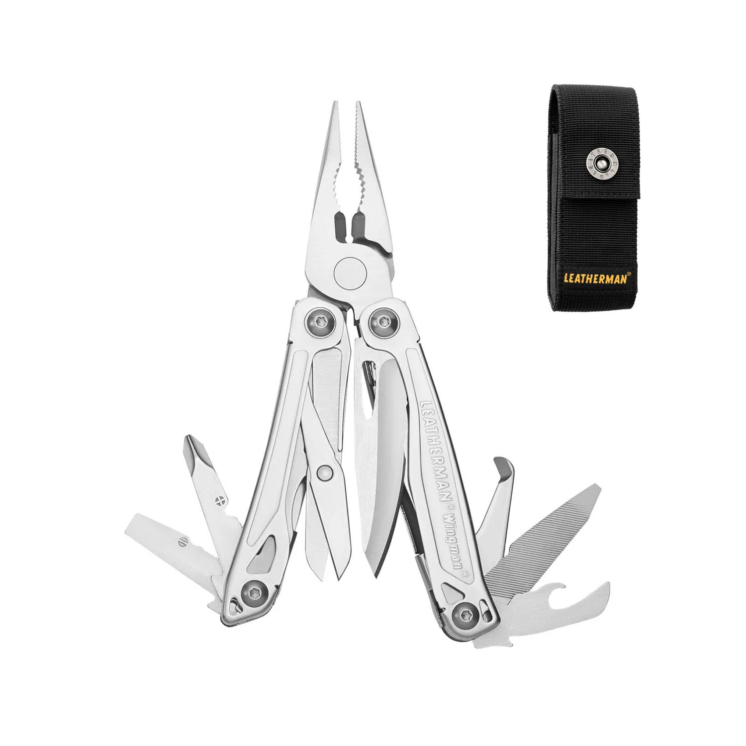 Leatherman Wingman monitoimityölu, jossa on 14 työkalua. Mukana toimitetaan nylonista valmistettu kotelo. Meiltä voit tilata Leatherman monitoimityökalut omalla logolla kaiverrettuna. Pyydä tarjous!