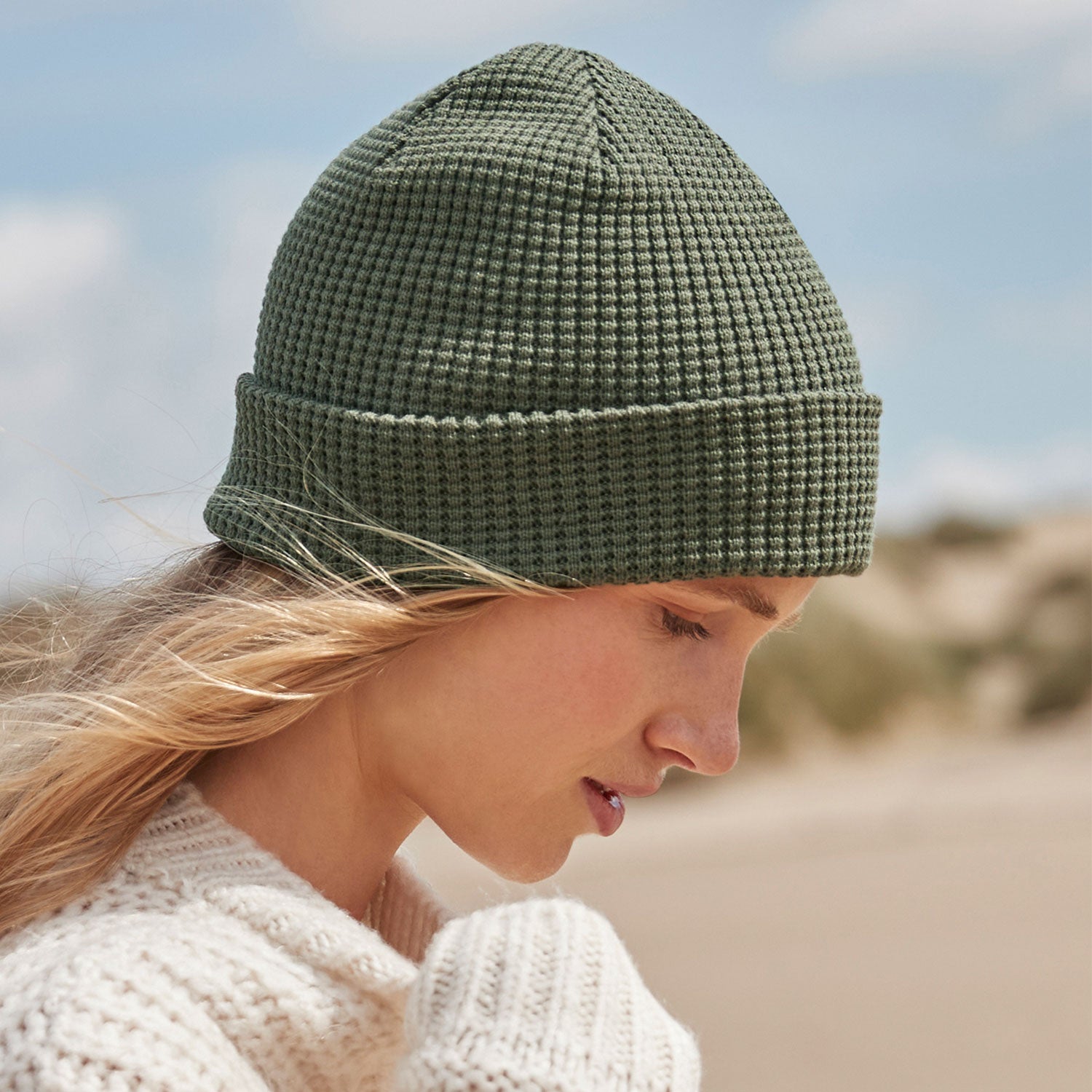 Luomupuuvilla pipo. Vohveli neulos. Kaksikerroksinen, hengittävä kangas. Valmistettu OCS -sertifioidusta luomupuuvillasta. Meiltä voit tilata luomupuuvilla pipot omalla logolla, brodeerauksella. Logon brodeeraus toteutetaan pipon taitokseen. Pyydä tarjous!
