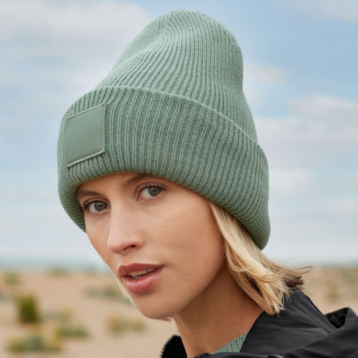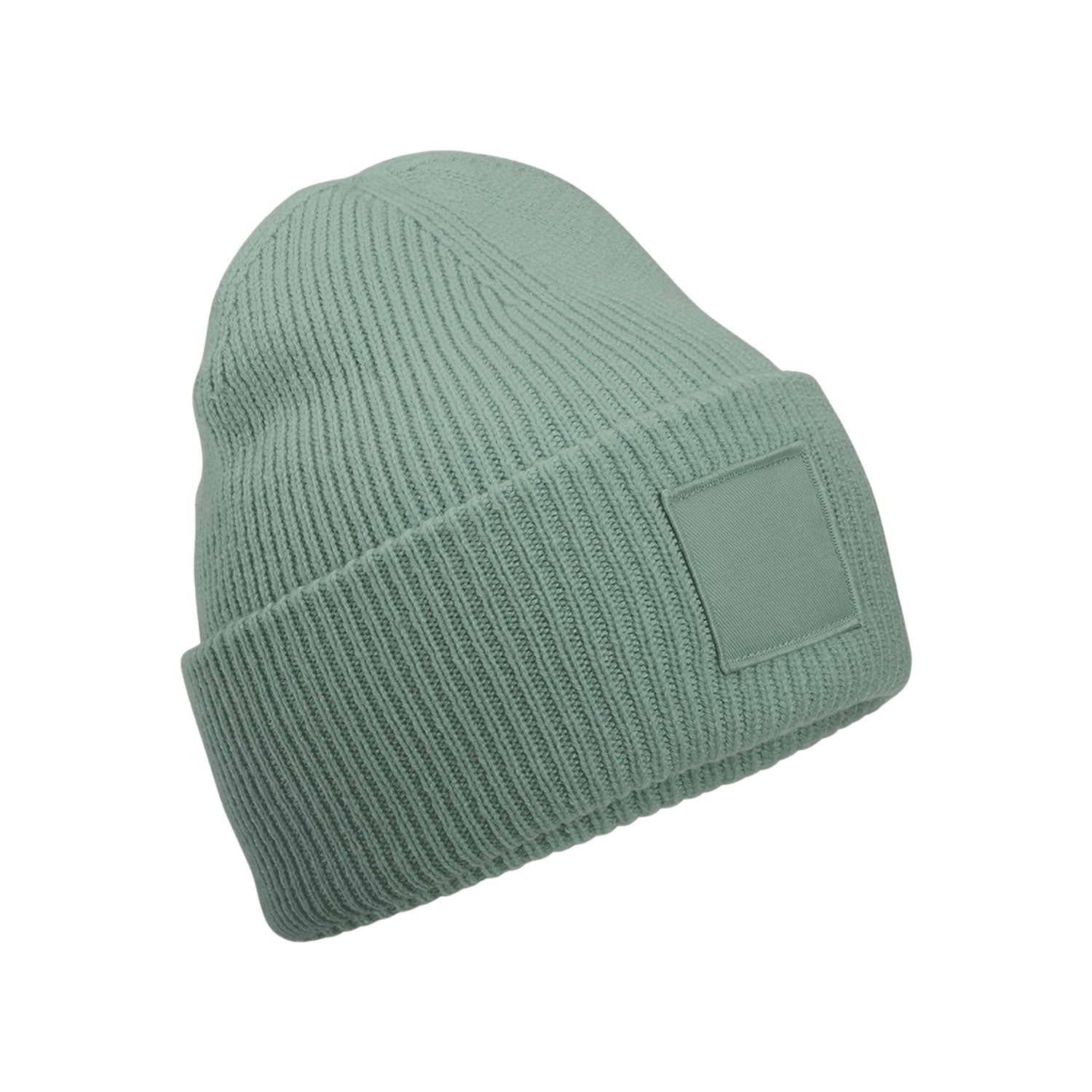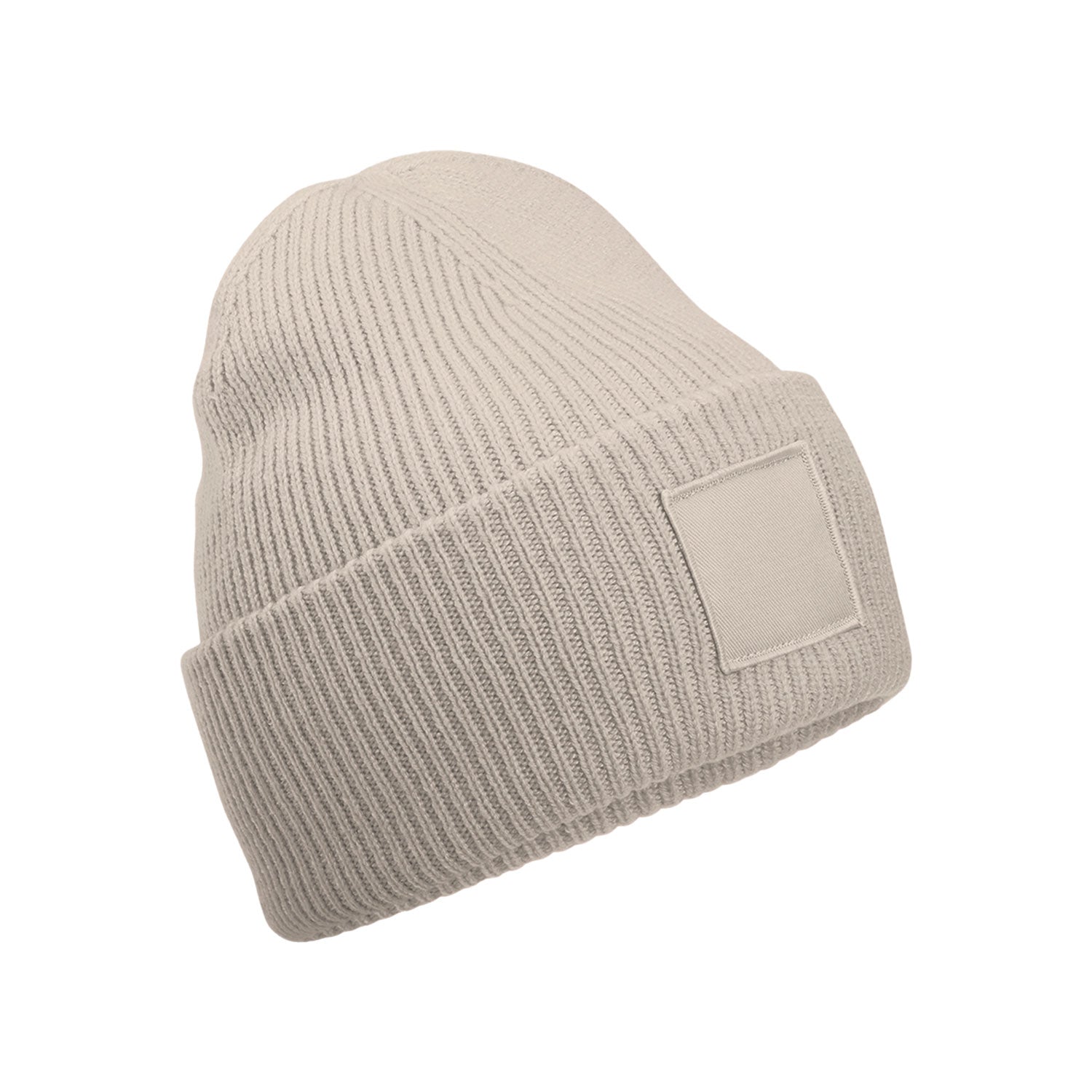 Ribbineulos pipo, jonka etuosassa on kangasmerkki. Kangasmerkin päälle on mahdollista toteuttaa painatus, esimerkiksi yrityksen logo. Pipo on valmistettu OCS-sertifioidusta kierrätetystä polyesterista. Kangasmerkin koko: 5x5 cm. Tilaa ribbineulos pipot omalla painatuksella. Pyydä tarjous!