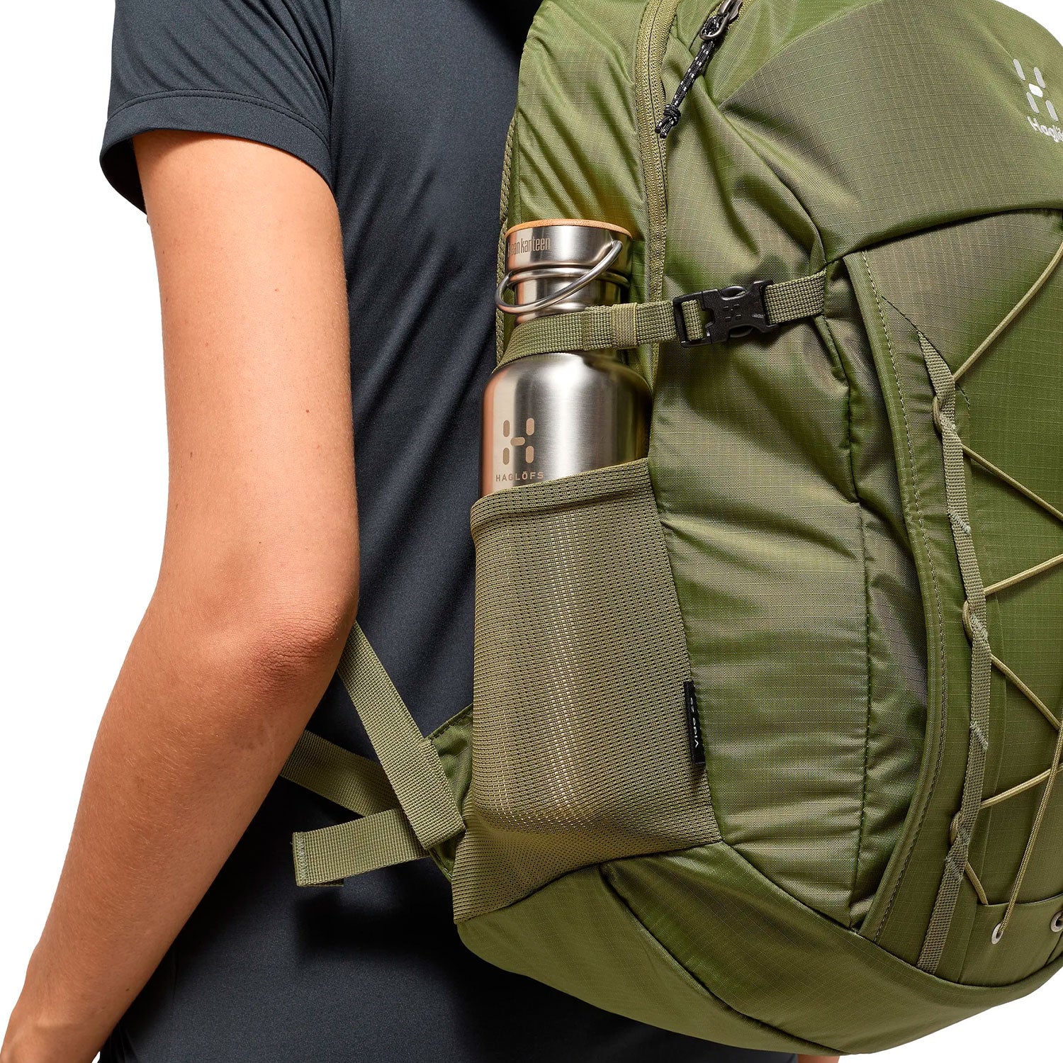 Laadukas Haglöfs Vide 25 L reppu, joka on suunniteltu jokapäiväiseen käyttöön, ulkoiluun ja retkeilyyn. Reppuun mahtuu 15" tuumainen läppäri. Repun sisällä on tasku kannettavalle tietokoneelle, joka on myös yhteensopivan juomapussin kanssa. Repun yläosassa on yksi pieni vetoketjullinen tasku pientavaroille ja avaimille. Pehmustetut olkahihnat ja selkäpaneeli. Repun saa tukevasti kiinnitettyä selkään vyötärö- ja rintaremmeillä. Meiltä voit tilata Haglöfs Vide 25 L reput omalla logolla, painatuksella. Pyydä tarjous!