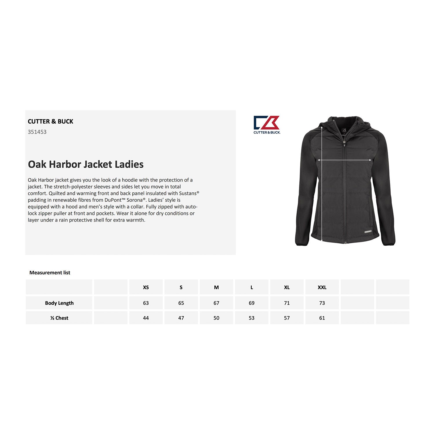 Cutter & Buck Oak Harbor jacket ladies, naisten hupullinen kevyesti topattu hybriditakki. Takin etupuolella ja selässä on toppaus, joka on valmistettu Dupont/Sorona kuidyusta. Hihoissa ei ole toppausta. Joustava kangas hihoissa ja takin sivuilla. Naisille ja miehille omat mallit. Tilattavissa omalla logolla, brodeerauksella tai painatuksella. Pyydä tarjous!