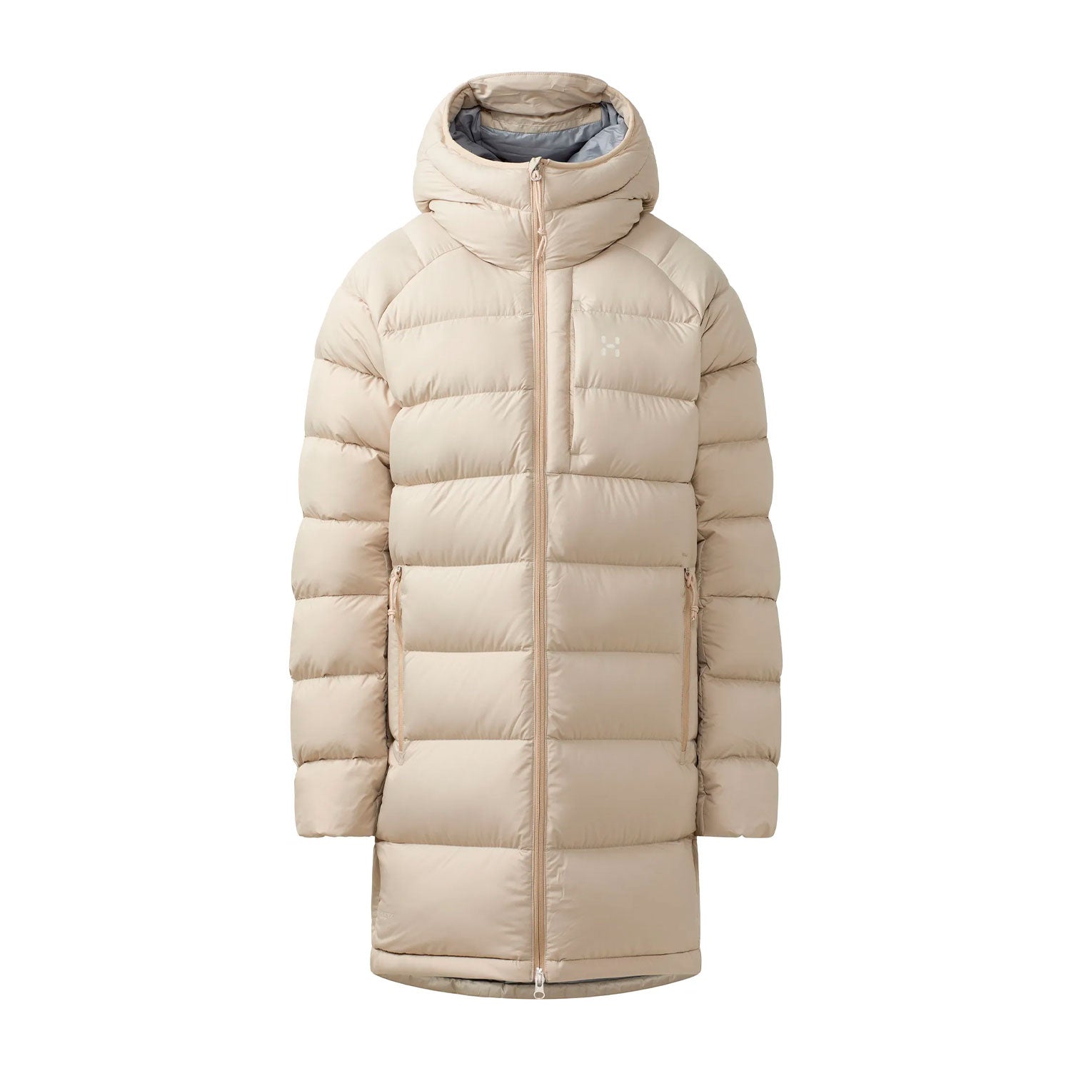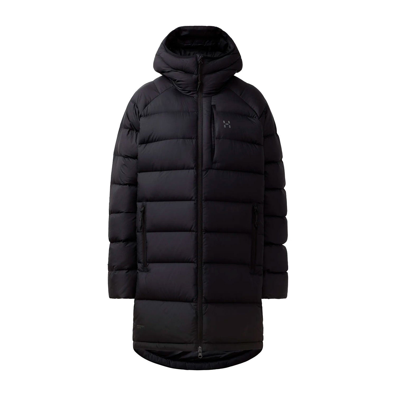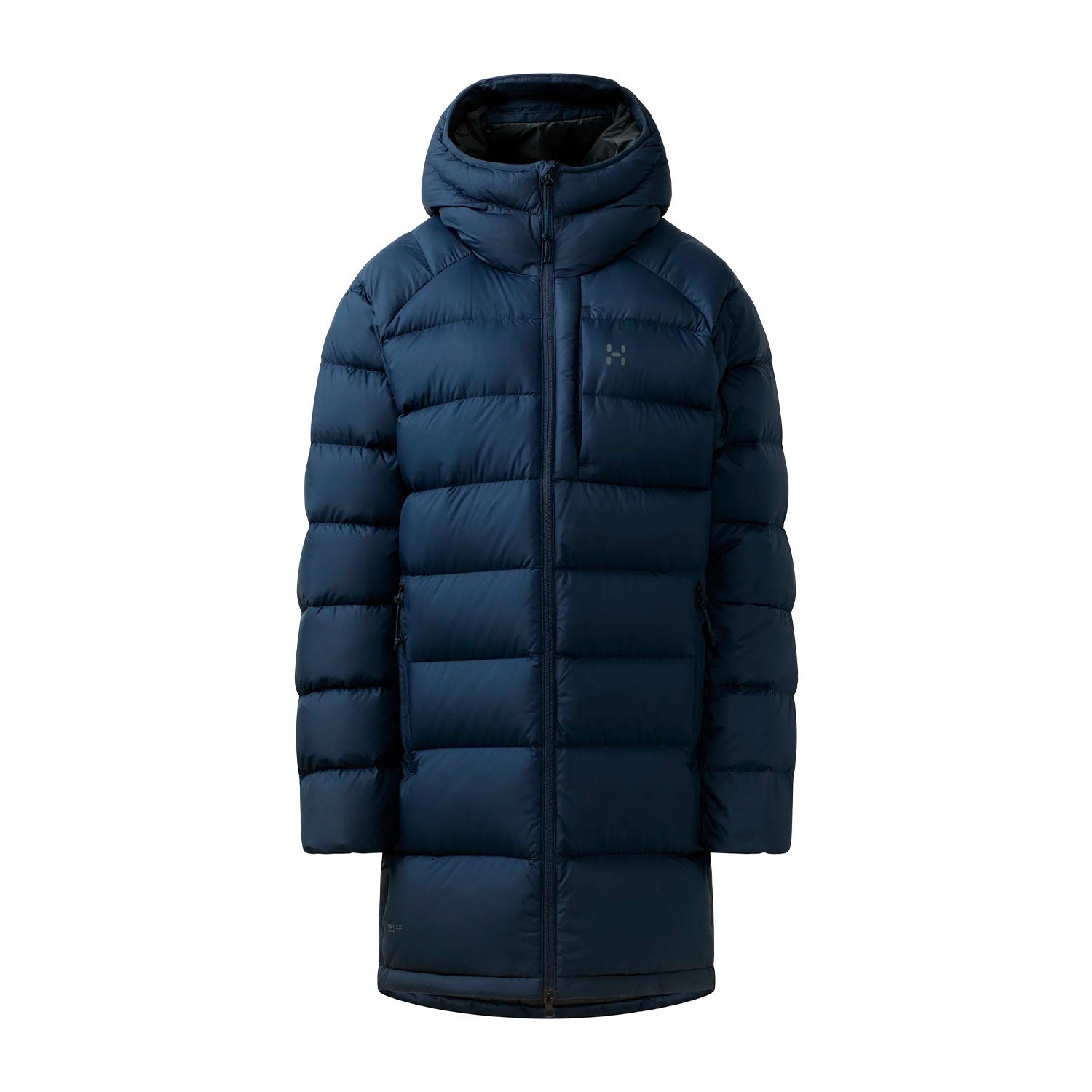 Haglöfs naisten pitkä untuvatakki hupulla. Untuvatoppaus (fill power 600). Vetoketjullinen rintatasku ja kaksi vetoketjullista käsitaskua. Säädettävä huppu. Takin ulkokangas Pertex® Quantum ripstop -kierrätettyä polyesteria. Naisille ja miehille on saatavana omat mallit. Tilaa Haglöfs pitkät untuvatakit omalla logolla. Pyydä tarjous!