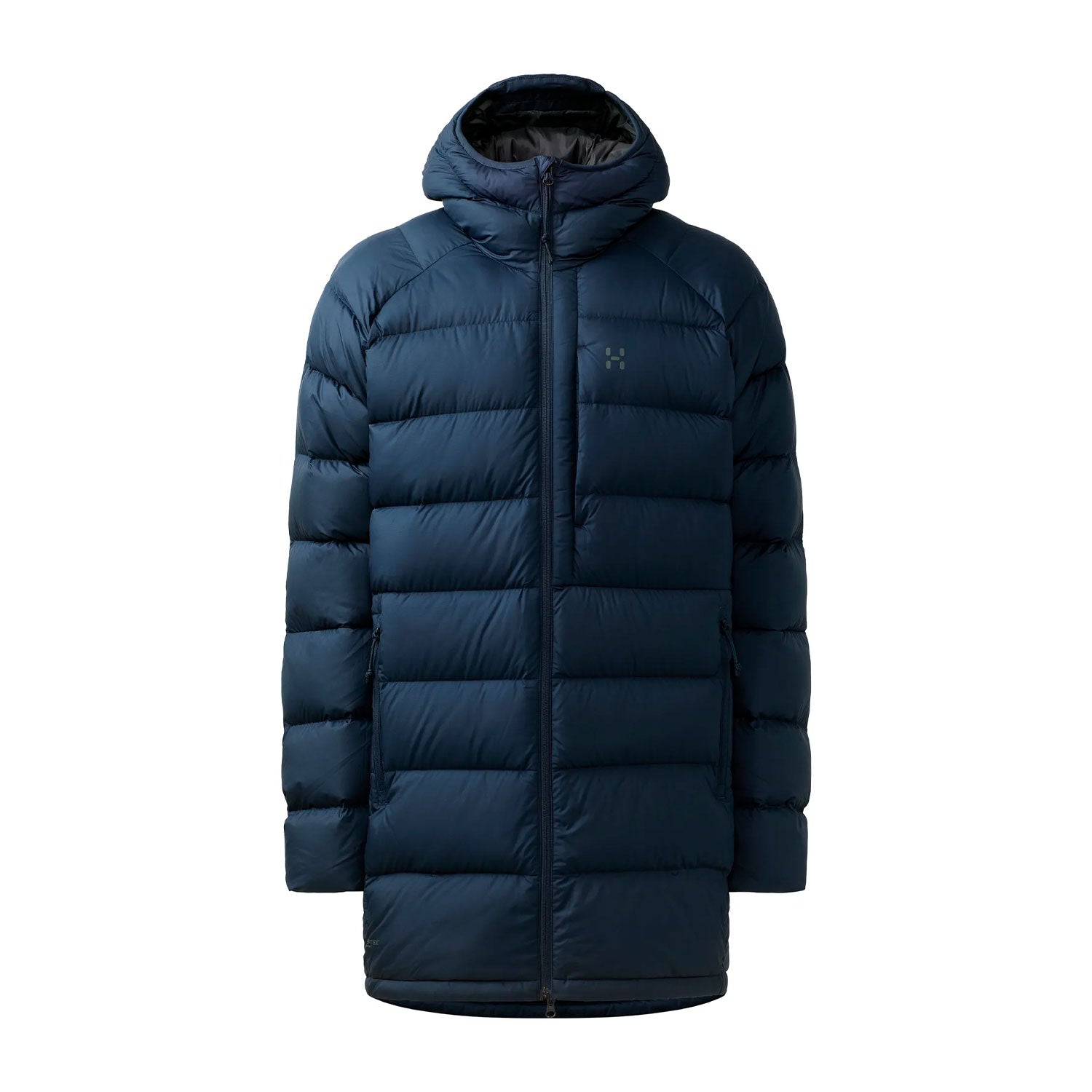 Haglöfs miesten pitkä untuvatakki hupulla. Toppaus untuvaa. 600 fill power. Pertex® Quantum ripstop -ulkokangas (100 % kierrätettyä polyesteria). Raglan hihat. Säädettävä huppu. Kaksi vetoketjullista käsitaskua. Miehille ja naisille on saatavana omat mallit. Tilaa Haglöfs pitkä untuvatakki omalla logolla. Pyydä tarjous!