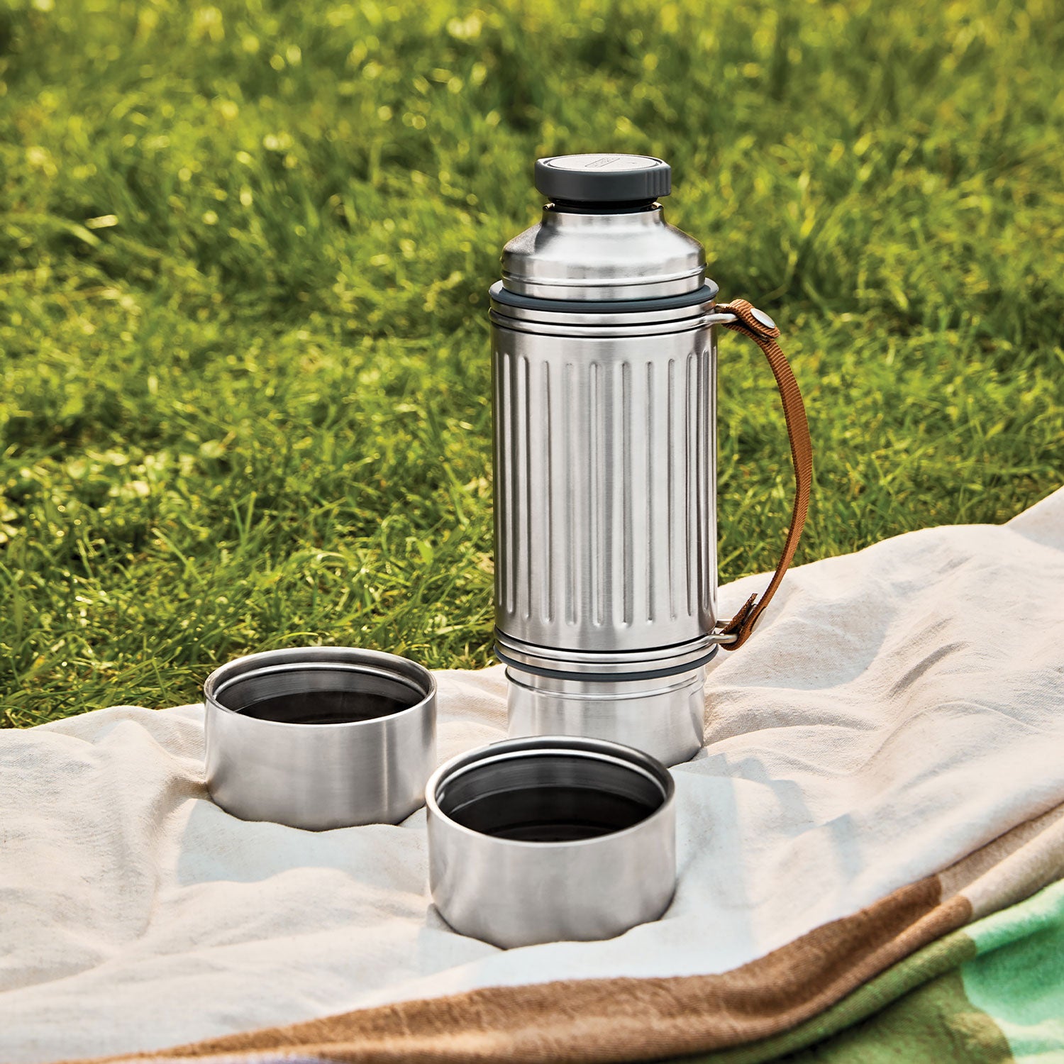 Black + Blum Explorer flask duo 1L termospullo. Termospullssa on kaksi kuppia, joista voit nauttia lämmintä juomaa. Termospullo on valmistettu ruostumattomasta teräksestä. Kaksiseinäinen rakenne. Kantohihna. Tilavuus: 1 L / 1000 ml. Meilltä voit tilata Black + Blum termospullot omalla logolla, kaiverruksella tai painatuksella. Pyydä tarjous!